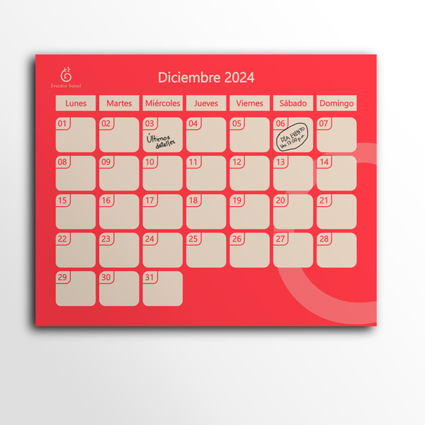 Diseño de calendario de pared para la Agencia de Eventos Yuinel Este diseño servirá a la agencia para una mejor organización de cada uno de sus eventos.